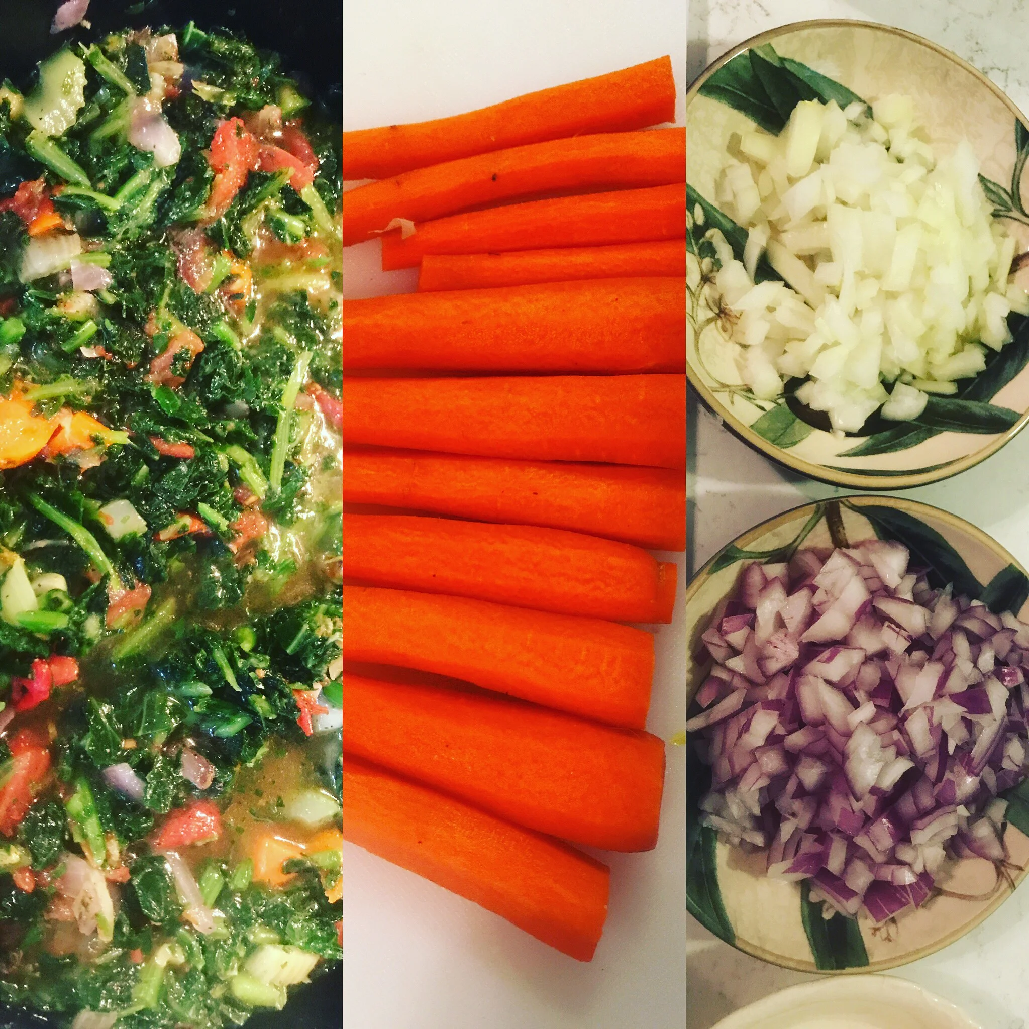 In a heavy soup pot, slick the bottom with oil and bring up to medium heat. Add the onions, carrots and celery and saute for 5 minutes, stirring occasionally. If using bacon or pancetta, add to the pan and cook until crispy. Add the garlic and stir. After a minute, add the chopped tomatoes and a tablespoon of tomato paste. Stir until paste dissolves. Add the stock and the kale and stir in salt, pepper, bay leaf and time. Cover and simmer for 20 minutes. If you used bacon or pancetta just for the flavor, you can remove the slices at this stage.