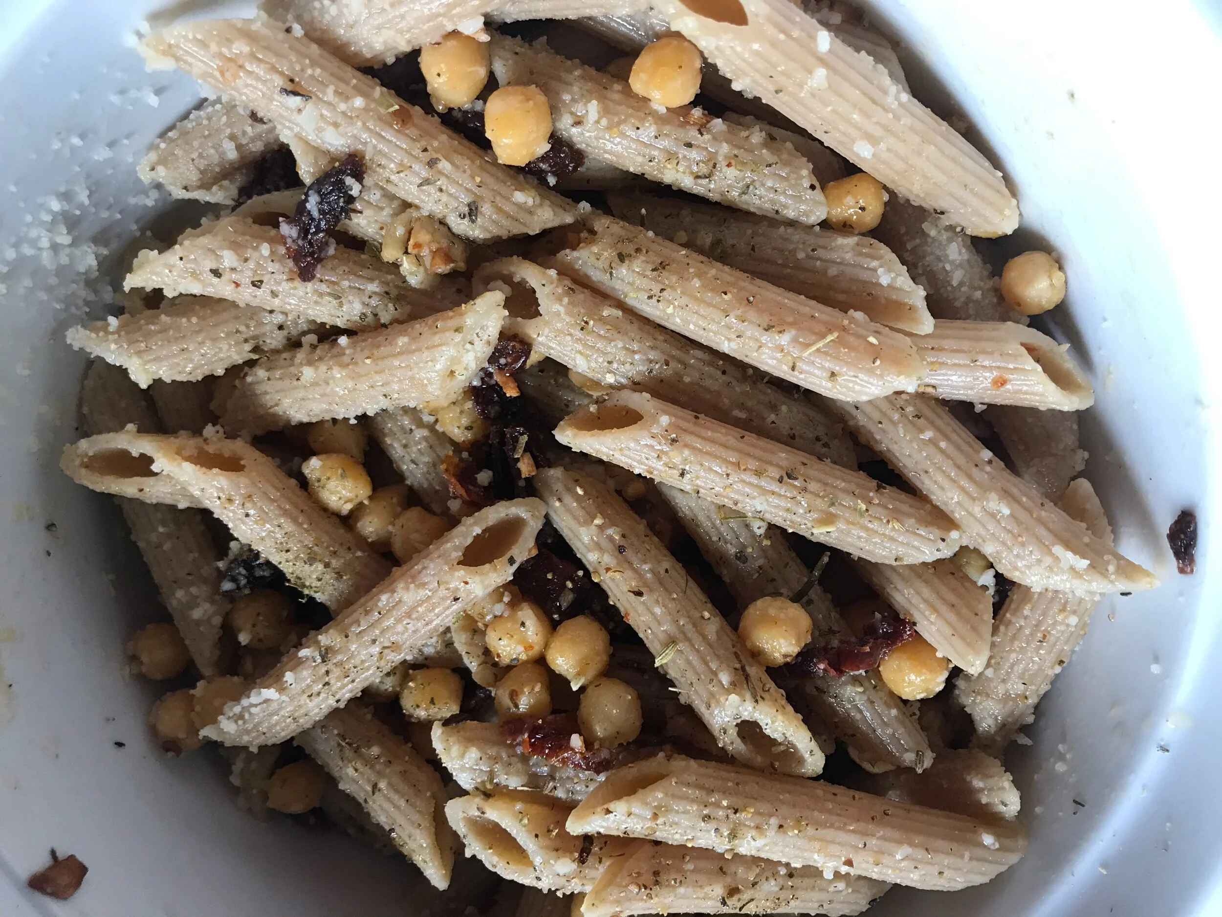 This recipe pairs the nutty flavors of whole wheat penne with toasted chickpeas and sundried tomatoes.